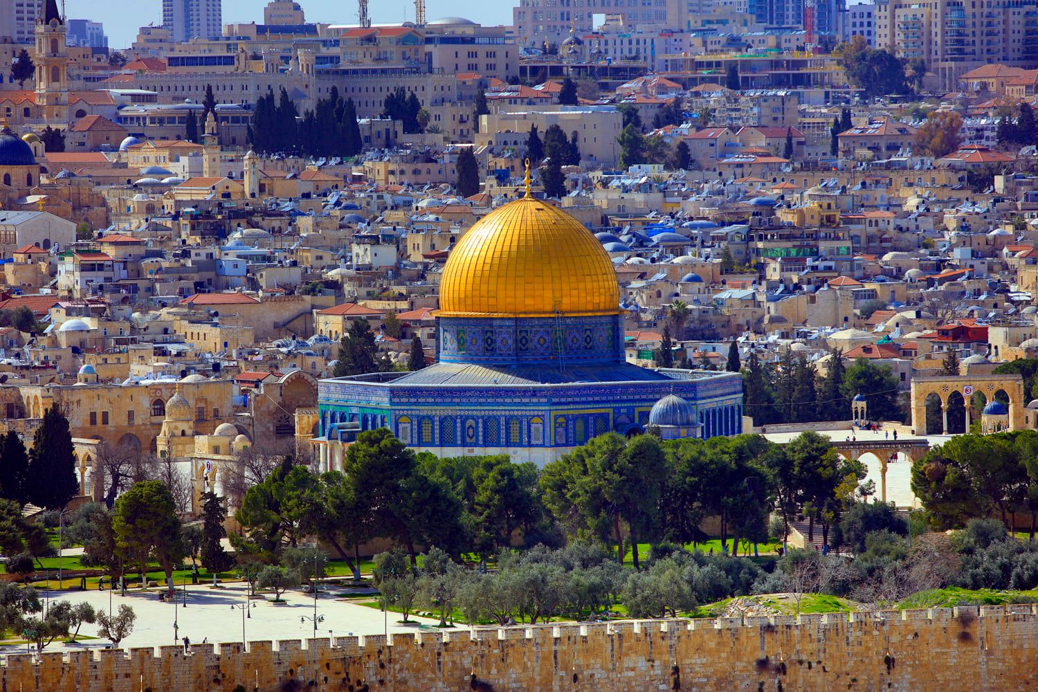 從主哭耶京堂眺望聖殿山的金頂清真寺