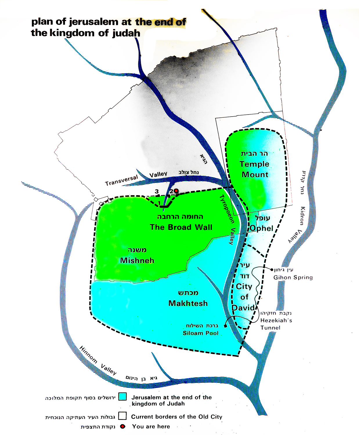 1967年中東六日戰爭之後,以色列佔領了東耶路撒冷,從此東西耶路撒冷再次合而為一。以色列展開大規模的考古發掘工作,在耶路撒冷舊城的猶太人區,發掘了一段城牆,經過研究,確認是南國希西家王時代,為了預備抵抗亞述軍隊而修築的城牆。這段城牆在舊約聖經尼希米記也有提及。