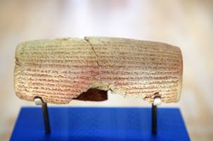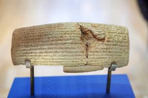 銘文記載了波斯王古列下令釋放被巴比倫俘虜的各族人民,可以自由回歸故土。內容細節與聖經舊約以斯拉記第一章的描述吻合。