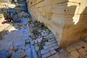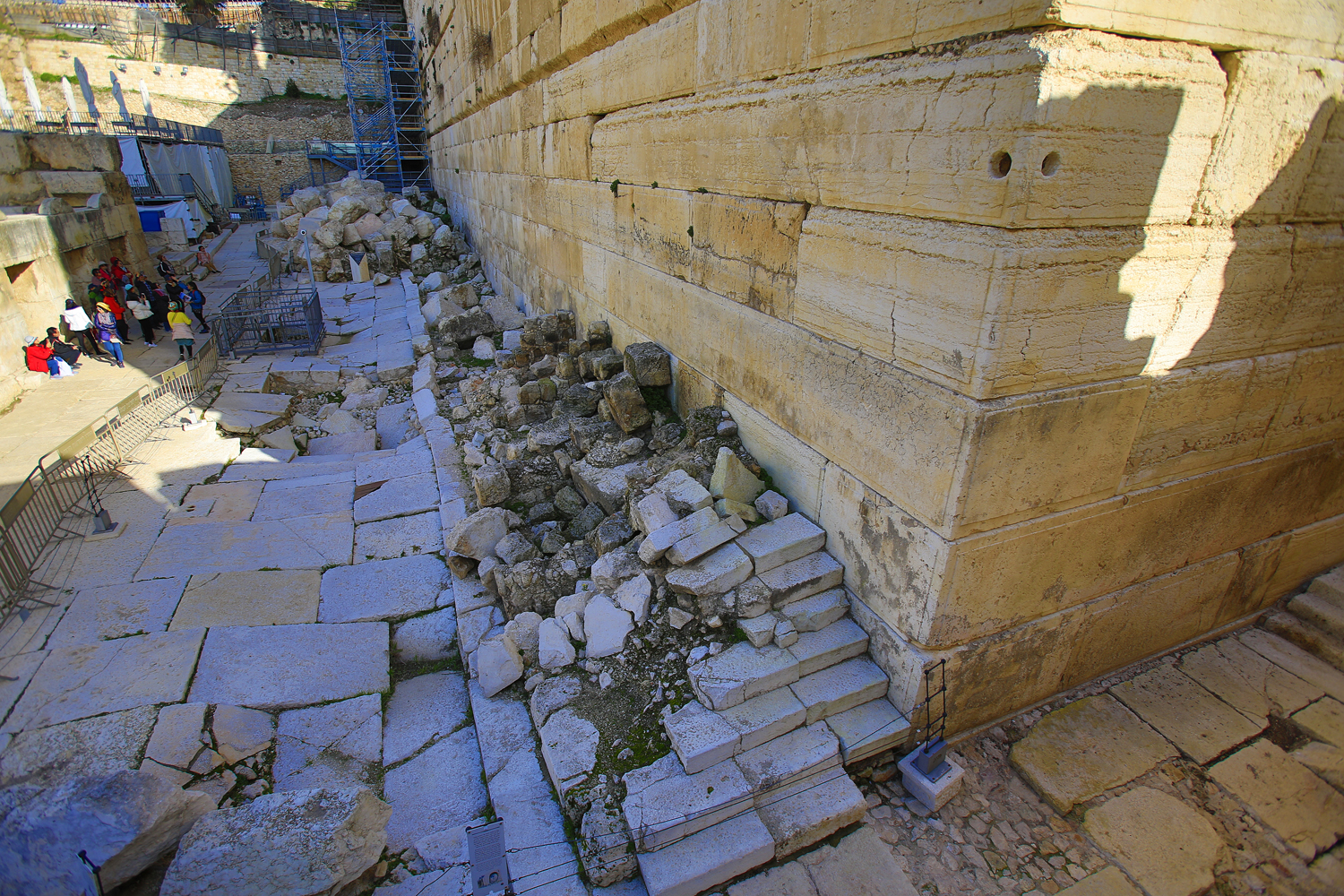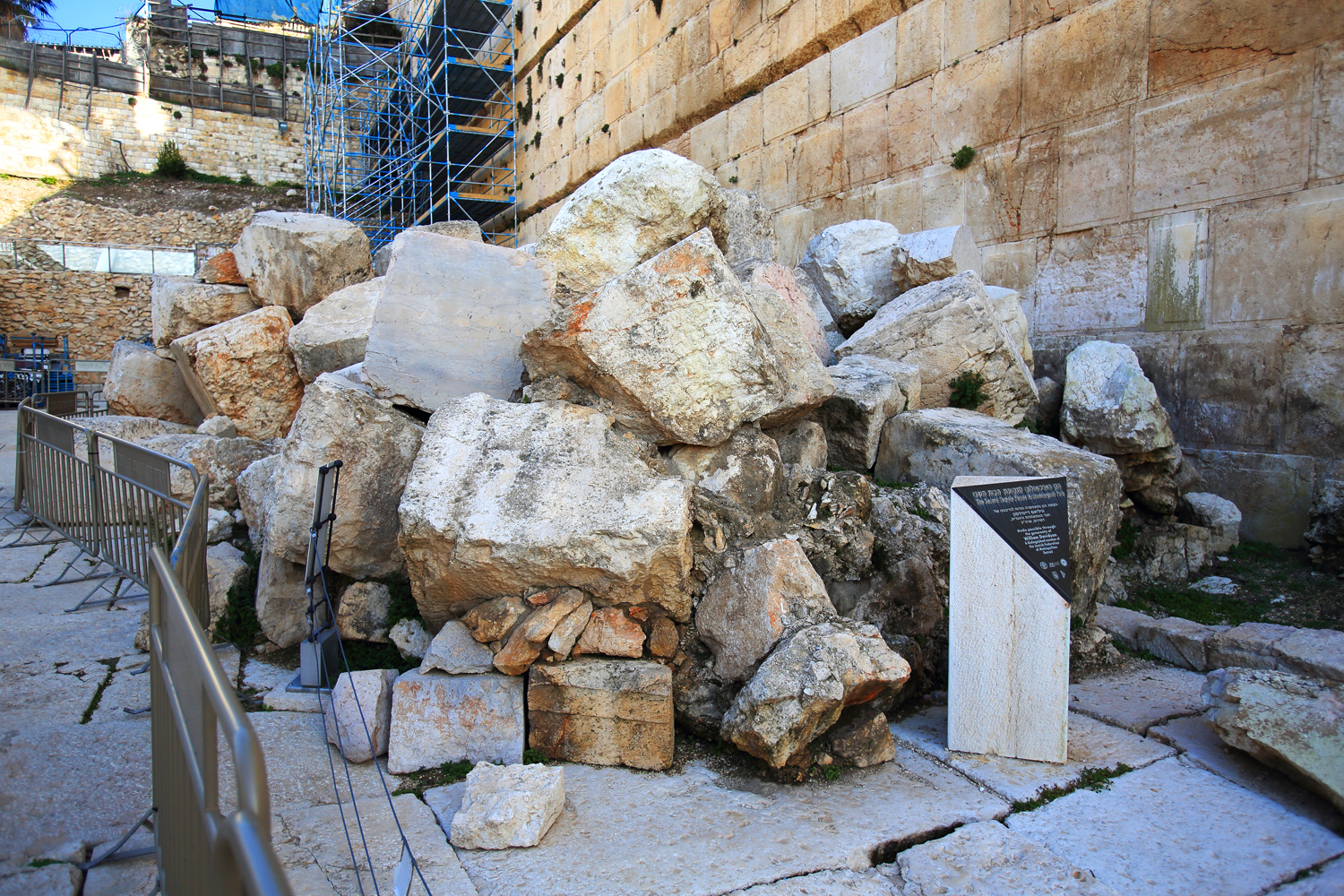 聖殿被羅馬士兵毀壞之後,石頭從高處墜下,跌在聖殿旁邊的街道上。