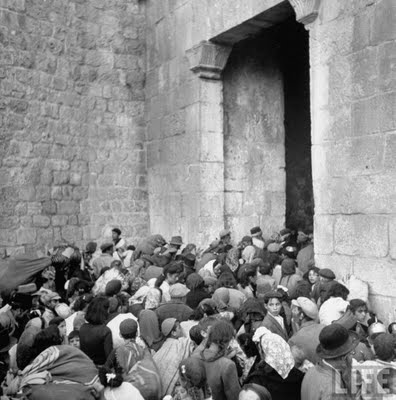 1948年以色列立國之後,第一次中東戰爭爆發。猶太人從錫安門逃往西耶路撒冷。 |